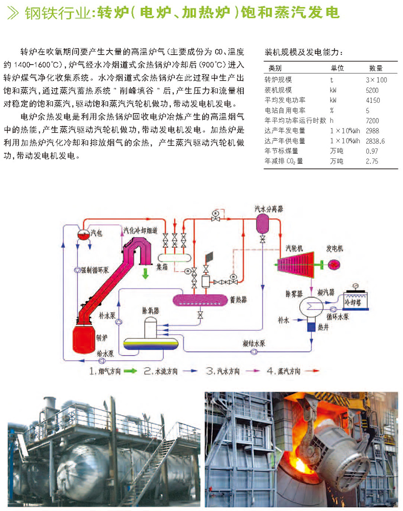 鋼鐵行業:轉爐(電爐、加熱爐)飽和蒸汽發電